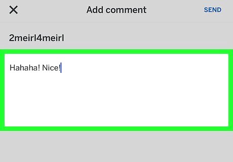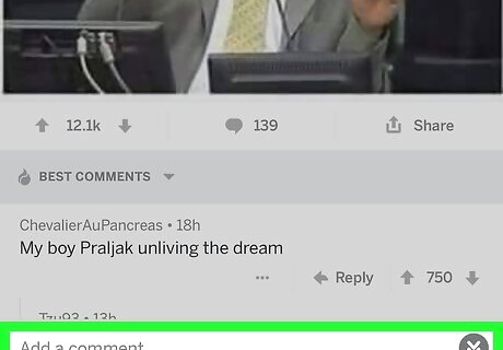 Tap Add a comment. It's in a bar at the bottom of the screen. This will bring up a pop-up window where you can compose your comment. If you want to respond to a specific comment the OP has made you can tap the "reply" button under their comment. The OP will have a blue microphone icon next to their username in the comments.