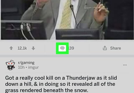 Tap the speech bubble icon below a post. The "comment" button is the icon that resembles a speech bubble in the center just below every post. It will display the number of comments there are next to it, or it will say "Comment" if there are no comments. This will take you to the comments section of the post.
