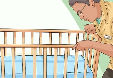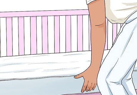 Replace the mattress. Your baby will spend a lot of time in their crib. Old mattresses can harbor allergens, have defects, and/or may not meet current safety guidelines. Replacing any mattress with a brand new one can ensure that your baby gets enough rest and stays safe. Buy the best quality mattress you can afford. Choose from a foam or innerspring mattress that is firm. A firm mattress will have little to no indentation when you press into it. A soft mattress can increase the risk for suffocation or SIDS if it conforms to your baby’s head. Make sure the mattress fits snugly into each corner of the crib. There shouldn’t be any gaps between the sides of the crib and the mattress. You can check this by seeing how many fingers fit in the gap. If it is more than 2, the gap is too large.