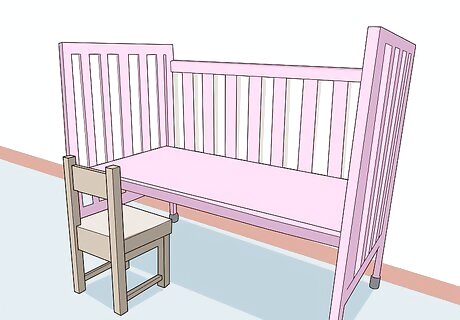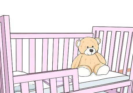 Avoid crib decorations. Your baby only needs a sheet on the mattress to sleep. Items such as blankets, bumpers, and pillows can strangle or suffocate a baby. You should also keep toys, including stuffed animals, out of the crib. Hang any mobiles high enough above the crib that your baby can’t reach it. Remove any mobiles if your baby can push up on their hands and knees. Do not hang clothes, blankets, decorations or anything else on the sides of your baby’s crib either. They might pull them down and this could lead to suffocation.