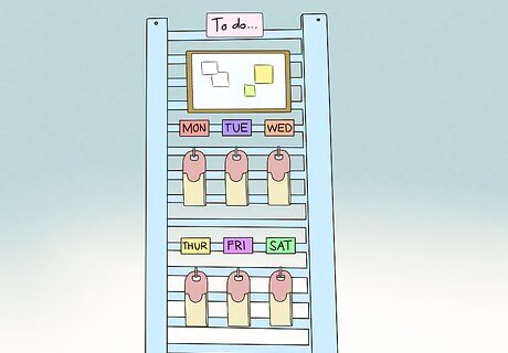 Construct an organizer from the rails. Chances are that you have things around the house that may require better organization. These may include fabrics, clothing, or jewelry. You may even want to let everyone in your home know what their chores are. Converting the slatted rails of your crib is a cheap and easy way to repurpose it. Paint the rails any color you like. Make sure to use non-toxic paint. Nail hangers and clipboards or place “S” hooks on the rails so they are secure on the organizer. Hang or secure the organizer by drilling through the pre-made holes with long screws. Personalize the rails by painting them, gluing on gems or knobs, and attaching ribbons to them to hang jewelry from.