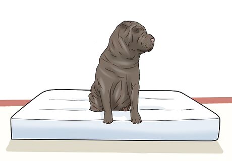 Create a plush bed from the mattress. Your family members may love to play and laze on the floor. You may even have animals that could use a comfy bed. You can use your old crib mattress to create a plush seat or “bed” for your office, a playroom, or in a space for your pets. Make sure the mattress is in good condition without any stains, tears or strange smells. Older mattresses may contain mold or mildew that can harm humans and pets. Place the mattress onto a wooden frame for something more structured. You can also simply place it on the floor. Consider adding wheels if you’d like to move the plush bed around the house. Add a soft cover sheet and any blankets your family members or pets like. Consider putting a little canopy over the mattress to make a cozy nook for reading or sleeping.