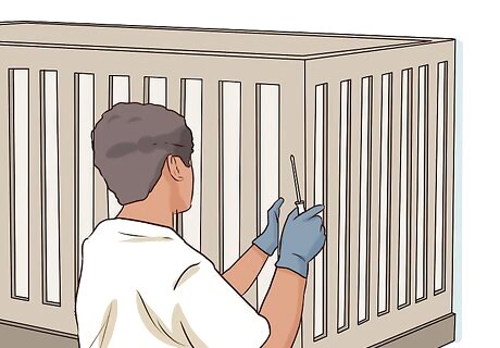 Fix any problems if possible. If you do not see any considerable safety hazards, fix any issues with the crib. Make sure to: Replace missing hardware. Tighten loose parts. See if you can get an immobilizer or stabilizer for a drop-side crib from the manufacturer. Position a drop-side crib so you don’t use it. Sanitize the crib. Get a new crib mattress. Never use an old mattress.