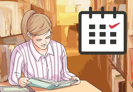 Set a research schedule. Research projects often take more time than you expect them to, and they are quite difficult to do at the last minute. To make a research schedule, begin with your final project due date and work backwards, setting dates for yourself for your rough draft, your prewriting, your research organization, conducting your research, and selecting and limiting your topic. Be sure to plan adequate time outside of your home, working at your school or public library.