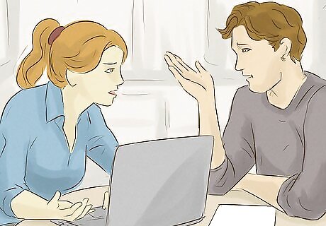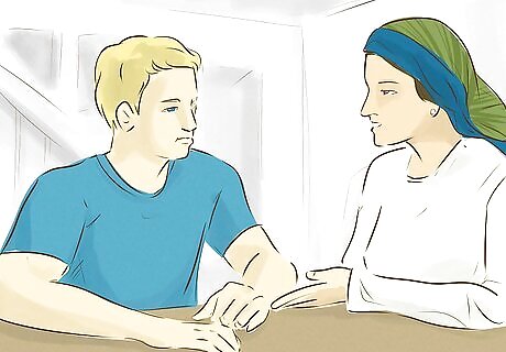 Be aware of non-verbal communication when talking. Even if your intentions are good, you can sometimes accidentally give negative signals when listening. Be aware of your body language so you look attentive and caring while talking over differences. Maintain eye contact and sit still so you look like you're paying attention. Fidgeting or glancing around the room can make you look impatient.