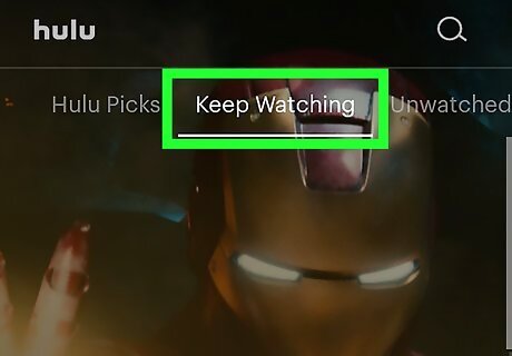 Tap Keep Watching at the top of the screen. A list of your recently watched will appear. You can scroll to find the show/episode you wish to watch.