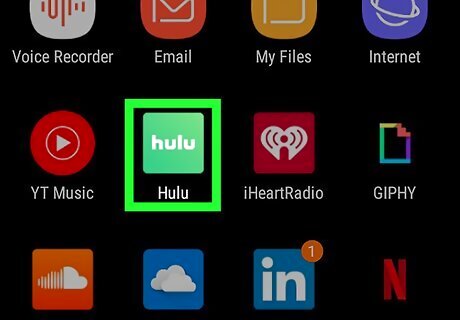 Press the Hulu app icon. The icon looks like either a green, lowercase letter 'h' or a green box with the word ‘Hulu’ inside. Pressing the app icon will launch the Hulu app.