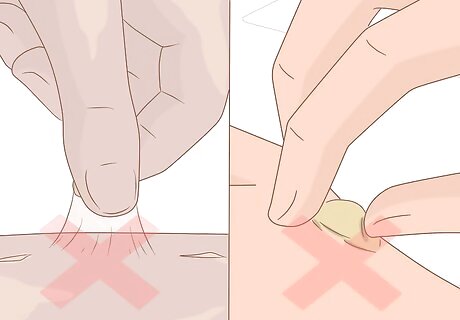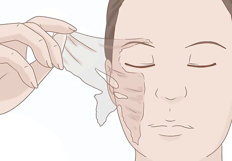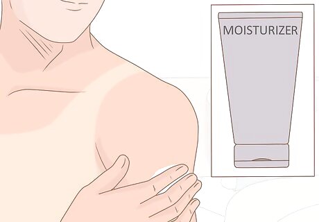 Treat blistered and peeling skin gently. Your skin may blister and then peel away after a sunburn, depending on the severity of the burn. Don’t be tempted to intervene in this process — it’s our body’s natural way of dealing with damaged skin. In fact, picking and peeling skin can slow the healing process rather than help it. Don’t pick or pop blisters. Blisters are a protective barrier that your body forms, and popping them can cause infections and slow your healing. Instead, cover any blisters with gauze — you can wet the gauze with water first to make it more comfortable on the blister. If they break, wash them with soap and warm water, apply a disinfectant cream, and cover them with a wet bandage. Your outer, damaged skin may peel away as you heal. Let it be. Do continue to apply moisturizer frequently, though.