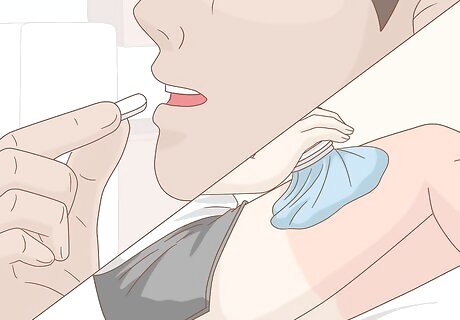 Relieve pain and itching. Sunburns are uncomfortable — stinging, itchy, or both. Try to find other ways besides skin creams to relieve this discomfort. Compresses, baths or showers, and pain medication can all work. Take cool showers or baths to cool your skin. You can also apply a cool compress to the area, like a damp washcloth or towel. Avoid alcohol and products containing alcohol, however, which can dry out the skin. Consider over-the-counter pain medication like ibuprofen to control pain, as well, until the soreness and swelling subside. Ibuprofen in particular will reduce the inflammation in the skin that is causing the pain. Tylenol may also be appropriate, but it will likely not be as effective. For itching, dab some calamine lotion on the affected area and repeat as needed. If you are allergic to lidocaine, avoid any topical pain relievers with “-caine” in the name (like benzocaine), as they may cause allergic reactions.