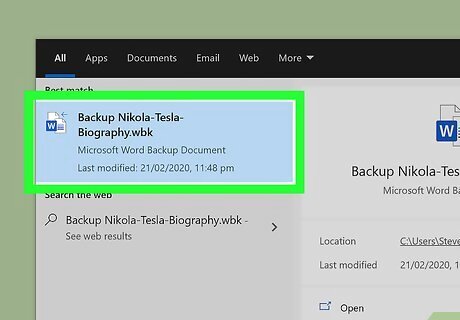Search your files for your Word file name with the .asd file format. In Windows 7, 8, and 10, you can search for the file name in the Start Menu or search bar in File Explorer. In Mac, you can use Spotlight to search for the .asd file.