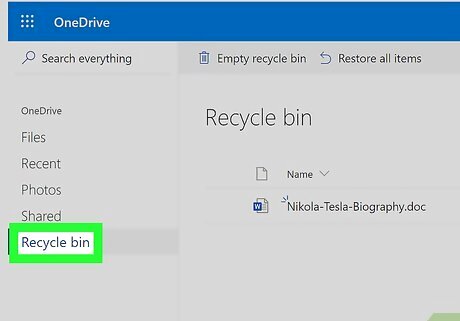 Go to https://onedrive.live.com/about/en-US/. You can use any web browser to recover documents from your OneDrive recycling bin. If you don't use OneDrive, you'll need to try the next method instead.