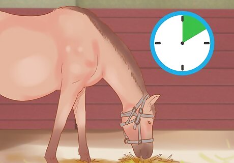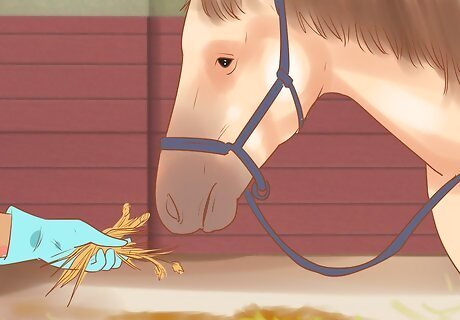 Provide your horse with fresh hay to meet its higher energy needs. Hay is the best feed for your horse. Feed it at least as much as you typically feed it during warmer months. However, you may need to provide additional hay to meet your horse’s winter needs. Ask your equine vet for advice on how much extra hay your horse needs during winter. You can also provide grain-mix supplementation if you normally do. Ask your vet if your horse needs grains.