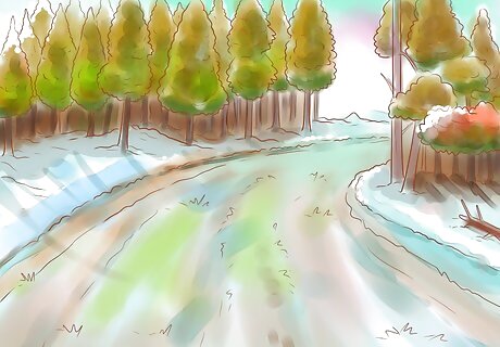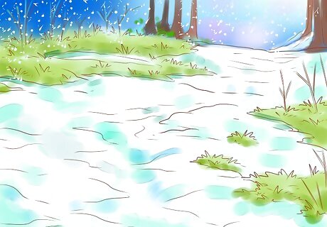 Avoid areas that may have holes, roots, or branches hidden by snow. Deep snow is dangerous for your horse because it can hide hazards. Additionally, it’s hard for your horse to walk through because it takes a lot of effort. Stick to areas that have a light layer of snow or are free of snow. A light layer of snow is usually safe to ride through. If you’re not sure how deep the snow is, push a stick down into it to see how far it goes. Choose a trail you know well so it’s easier for you to estimate how much snow is on the ground. Stick to trails that other riders have already passed over during the winter, since the snow in those areas will already be packed down and safer to ride on.