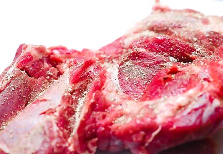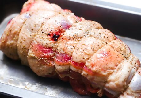 Buy from a high-quality butcher. When you're planning to make roasted leg of lamb, buy the lamb from a butcher you know and trust, rather than picking it up on sale from the grocery store. That's because the quality of the meat will have a big impact on the taste of the finished roast. Ask for a leg of lamb at market weight, meaning it was butchered at the proper age. Lamb that's below market weight was butchered too early. Butchering a baby lamb is unethical and isn't a common practice among reputable farmers and butchers. Lamb that's over market weight was butchered later in the animal's life. Older meat will taste more like mutton (the meat of an adult sheep) than lamb. Mutton has a much stronger taste that some people find distasteful.