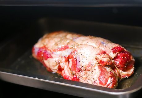 Place the lamb in a roasting pan. Use a pan that's just slightly larger than the leg.