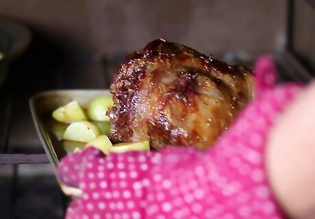 Reduce the heat and continue roasting. Turn it down to 350 °F (177 °C) for the remainder of the roasting time. Roast for another 30 minutes to an hour or more, depending on your preferred level of doneness. No matter what, use a meat thermometer to check the meat's temperature after about an hour to see how the lamb is progressing. Here are the general guidelines for roasting times: