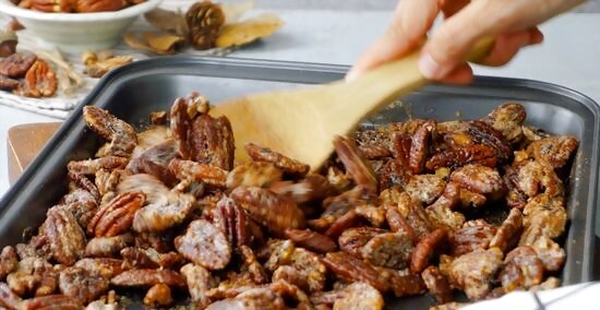 Stir the pecans with a large spoon or spatula. Return them to the oven for another 10 minutes.