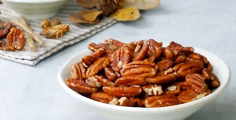 Crack pecans if they are still in the shells. Remove them and separate the pecan halves in a bowl. You can also purchase shelled pecan halves at the grocery store.