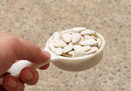 Measure how many seeds you have. Once your seeds are dry, take a ¾ measuring cup and count how many of these are filled by your squash seeds. Remember this number, as you'll soon be using it to calculate the amount of oil you need.