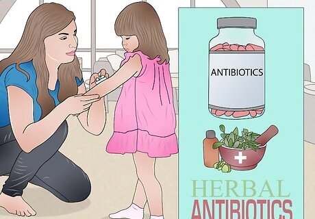 Limit the use of antibiotics. Antibiotics only work on bacterial infections, though many times people take prescribed antibiotics for viral infections. Talk to your doctor to see if an antibiotic is really needed, or if the infection may be viral or can be fought off without antibiotics. Use antibiotics only when there is a bacterial infection. You can also give your child’s immune system a chance to exercise and practice. If your child gets a cut or scrape, keep it clean and covered; however, you don’t have to use antibiotic cream for minor cuts. Overuse of antibiotics can lead to development of resistant bacteria, which can be tough to treat. Instead of using antibiotics, you can use natural sources of antibacterial, antiseptic, antifungal, and antiviral remedies if an infection is minor or your doctor says it's okay. These include things like oregano, echinacea, garlic, and honey. Make sure to follow the directions for antibiotic use exactly. Part of the reason that antibiotic resistant bacteria are an increasing problem is that the full dose of antibiotics was not given, leaving the small number of antibiotic resistant bacteria room to grow.