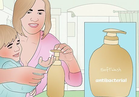 Use antibacterial products sparingly or not at all. Antibacterial products are not a necessary product if you have a child, though many people use them all the time. Antibacterial soaps are not needed, nor are they very effective. They can also expose your kids to unnecessary chemicals. If you use them, don’t use them all the time. Antibacterial soaps and hand sanitizers may inhibit the development of your child’s immune system. Alcohol-based portable sanitizers can be very useful, but the alcohol can be very drying. Use these products sparingly. The best hand wash is still soap and water.