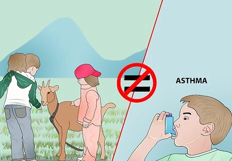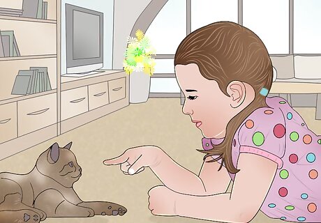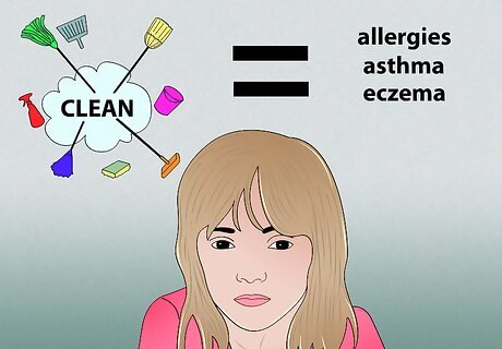 Let your child play with your pet. If you have a dog or cat, you shouldn’t restrict your child from playing with them. As long as your pet is reliably good-natured, let your children play on the floor or out in the yard with them, but make sure you supervise young children with pets at all times. Studies have indicated that the exposure to pet dander can decrease the risk of asthma and allergies.