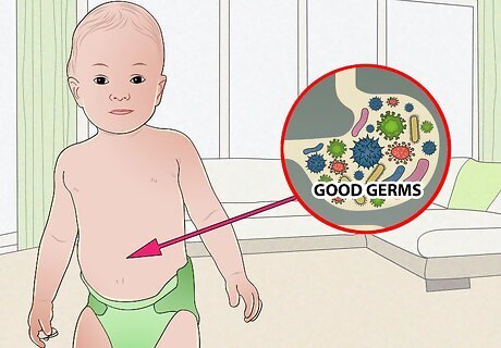 Allow your children to play in the dirt. It is okay to let your kids literally play in the dirt. Playing in the dirt will expose your kids to important groups of microorganisms found in the air, dirt, and water. However, your kids should still be cleaned up afterwards. Let your kids enjoy making mud pies. However, you should refrain from letting them eat mud pies.