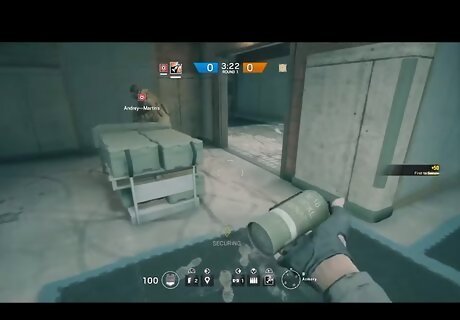 Warn teammates and throw flash or smoke grenade into the objective room. Speak with your teammates before throwing a flash grenade or smoke grenade into the room. Then throw the smoke or flash grenade far away from you to blind your opponents. Face away from the grenade to prevent blinding yourself. Enter or peek into the objective room quickly and eliminate any enemies that are blinded by your grenade.