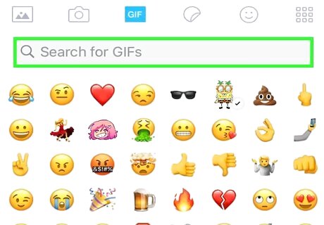 Tap “GIF” in the icon bar. Now you will see a search box that says “Search for GIFs,” as well as a series of emoji that look like the ones you may use in text messages.