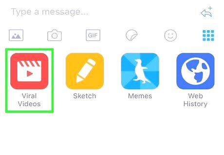 Select “Viral Videos” to send a popular video from the web. On the Viral Videos page, type a keyword in the Search box to find something specific or scroll through the list to discover something new. When you locate the video you want to send, tap it to add it to the chat.