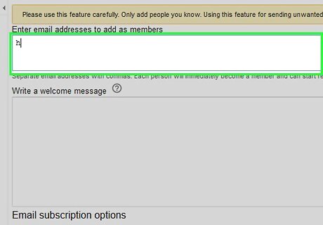 Enter contacts' email addresses. To do so, you'll type an email address into the text field at the top of the page, follow it with a comma and a space, and type another email address in, repeating as necessary. As you type, suggestions based on your contacts will appear below the "email addresses" field. You can click these suggestions to automatically place the corresponding email address in this field.