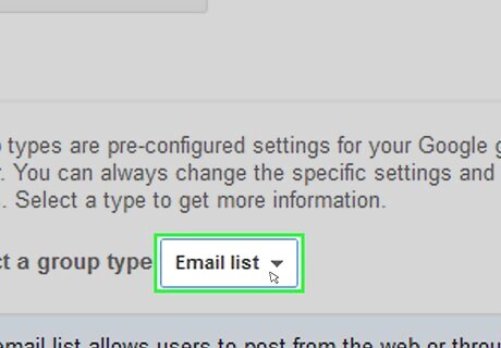 Make sure "Email list" is selected for "Group type". If you don't see "Email list" in the "Group type" section, click the box to the right of "Select a group type" and click Email list in the drop-down menu.