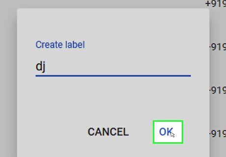 Click the label you created. It should appear in the drop-down menu here; clicking it will add you contacts to it. You can also click Create label and enter a name to add contacts to a new label.