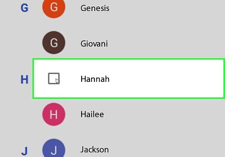 Select contacts for your mailing list. To do so, hover your cursor over the picture on the left side of a contact's name, click the box that appears, and repeat for each contact you wish to select. To select all contacts, press Ctrl+A (PC) or ⌘ Command+A (Mac).