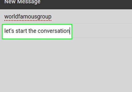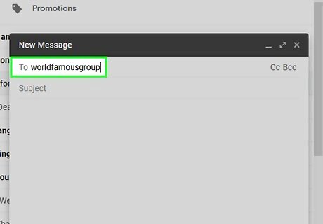 Type the Google Group's email address into the "To" field. This field is at the top of the "New Message" window on the right side of the page (desktop), or at the top of the screen (mobile).