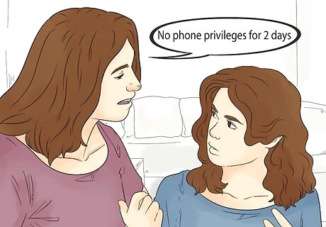 Consistently follow through on consequences. If your children break the rules, they must learn there are consequences. When you set your rules, it's a good idea to go ahead and let your teen know what the consequences will be for breaking them. In doing so, you must make sure you carry them through. If your child sees that you are all talk and no action, they will likely continue to break the rules knowing that they can get away with it. Reasonable consequences might include losing cellphone privileges for a certain period of time completely (e.g. no phone privileges for 2 days), having a narrow window of phone privileges (e.g. between 6pm and 8pm), or losing privileges that require safe decision-making and trust (like staying home alone).