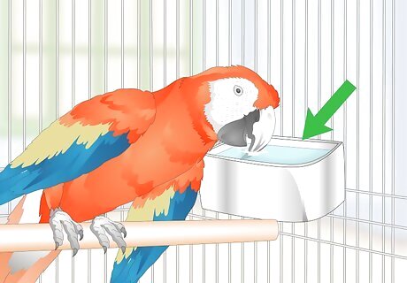 Make sure your bird always has clean water. While macaws are social eaters and prefer scheduled feedings times, make sure you bird always has access to fresh water. Change the water at least once a day or when droppings and other debris fall into it.