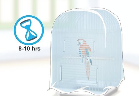 Get a cage cover if you’re a night owl. Parrots need 8 to 10 hours of uninterrupted sleep at night. If you or anyone in your family stays up late, place a cover over your macaw’s cage to keep out light and distractions. A cage cover will also help keep nighttime squawking to a minimum.