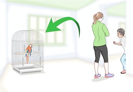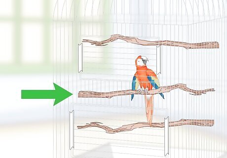Choose a low-traffic location that offers views. Place the cage away from your home’s center of activity, but in a spot where your macaw can see and interact with you. Avoid placing it near the kitchen or bathroom, as fumes from cooking and cleaning can be hazardous. A spot with a partial window view is great, but don’t place the cage directly in the window.