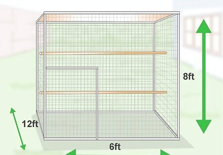 Create an aviary if possible. An indoor or outdoor aviary will give your macaw the space it needs to fly and burn off energy. If possible, designate a secured room for your macaw’s enclosure. You can also build an outdoor enclosure using panels of 10-gauge mesh. An outdoor aviary should be about 12 feet long, 8 feet high, and 6 feet wide (about 4 m by 2.5 m by 2 m).