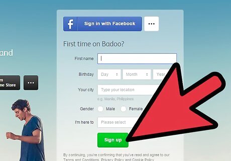 Sign up for a Badoo account. Open a browser, type “www.badoo.com” into the search bar, and once the Badoo home page is up, hit “Join Badoo” on the top right corner of the page. You will be redirected to Badoo’s sign-up page. Once on the sign-up page, enter your name, birthday, city, gender, and email address into the corresponding text fields. You will also be asked to state your reason for being on Badoo. Just click on the tab right next to “I’m here to,” and choose an answer from the drop-down menu. Once done, hit “Sign up” at the bottom of the page.