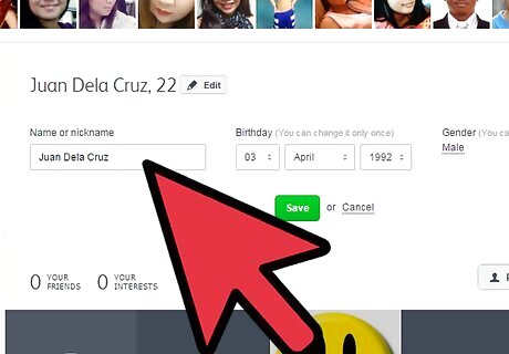 Edit your name, age, location, and choice of interests. Just click on the “Edit” button next to your profile name to edit your name or nickname and you birthday date. Remember, you can change “Gender” only once. You can also change your existing location or choice of interests by clicking on the “Edit” button. Click on the “Save” button to save all your changes.