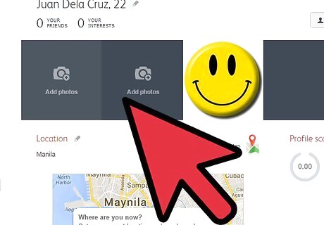 Add your photos. You must upload at least three images to complete your profile. Only upload photos of you, meaning no group photos, cartoons, or scenery are allowed in the “Photos of you” section. Your images will get a rating from other users, so upload your favorites!