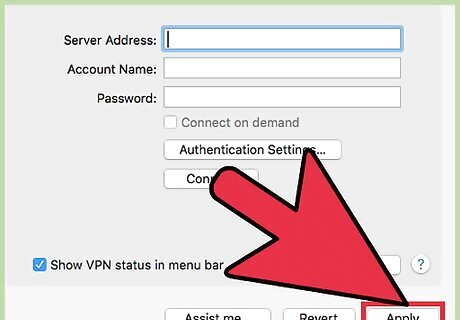 Click Apply. Now you should see a new icon in the menu bar at the top of the screen (near the clock). This is the VPN status icon, and you can use it to connect and disconnect from the VPN.