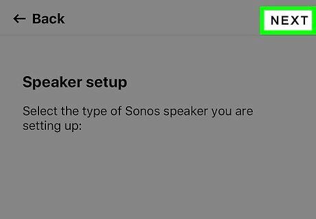 Tap Next. It’s at the top-right corner of the screen. Now it’s time to physically set up the speakers.