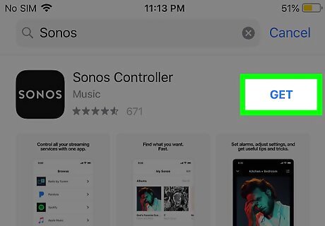 Download Sonos from the App Store iPhone App Store Icon. The App Store is usually on the home screen. To download Sonos, search for the app, tap GET, then tap Install. When the installation is complete, “Install” will change to “OPEN.”
