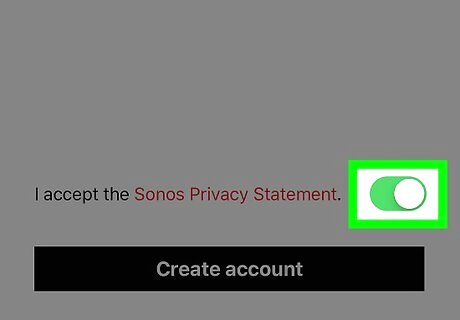 Slide the “Sonos Privacy Statement” switch to On iPhone Switch On Icon. This activates the button below.