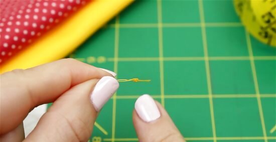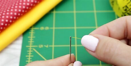 Tie a knot at the end of the thread to make sure the end of the thread doesn't go through the fabric.