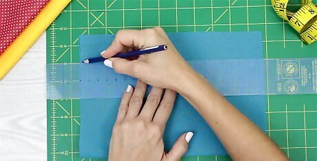Draw a guide. Draw a straight line onto your fabric. Use special sewing chalk or washable pens that are easily removable. Use something straight - a book, cardboard, boxes or a simple ruler - to draw a line that is truly straight. This line will be your guide through the sewing process.