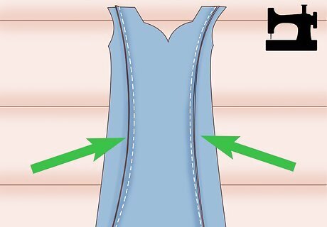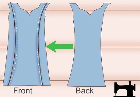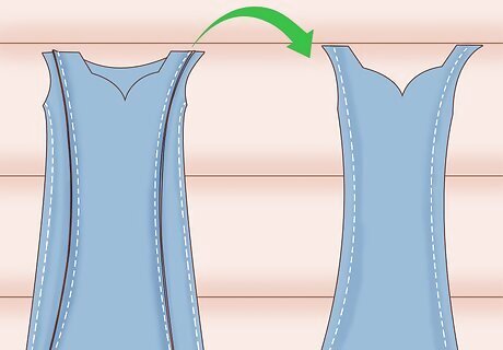 Invert the completed bodice piece. After you have sewn the two bodice pieces together, invert the piece so that the seam is on the inside and hidden. Then, use your fingers to press along the inside of the neckline to push out any fabric that is stuck or uneven. If the inverted piece looks bumpy or uneven, then you may want to use an iron to press it. Iron along the neckline to flatten it out.
